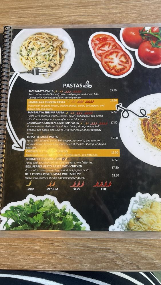 Mild, medium, spicy. Substitute for shrimp or chicken & shrimp for an additional charge.